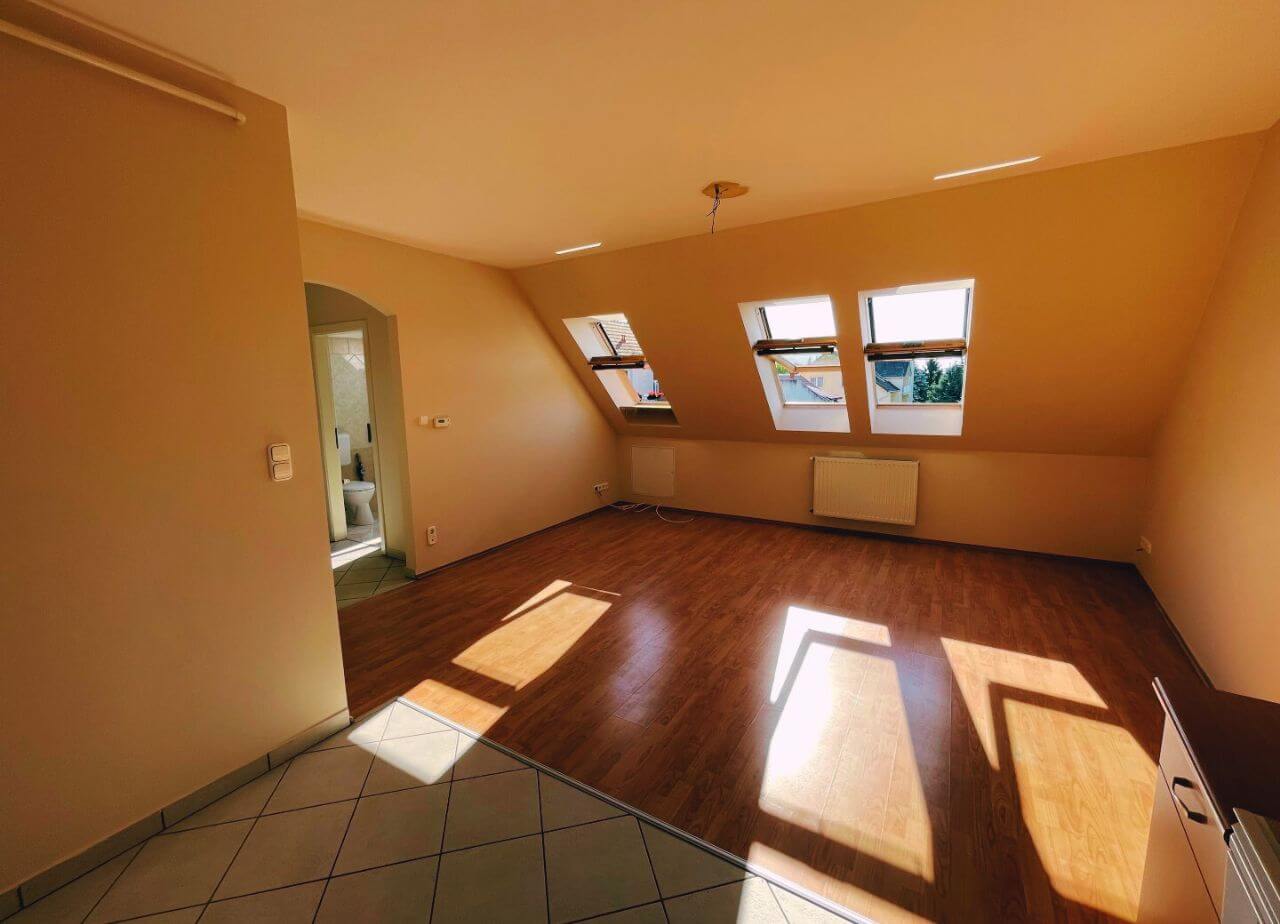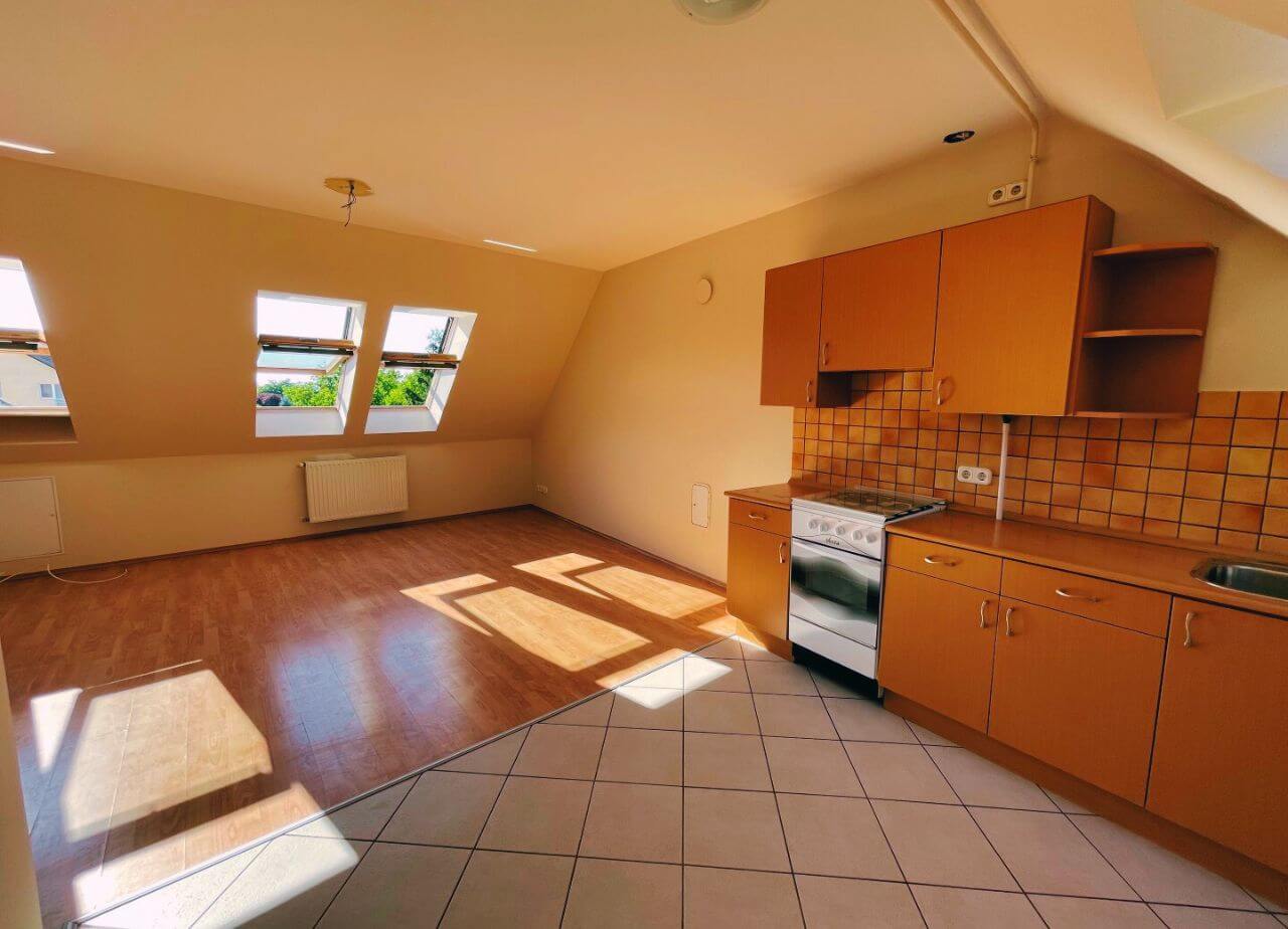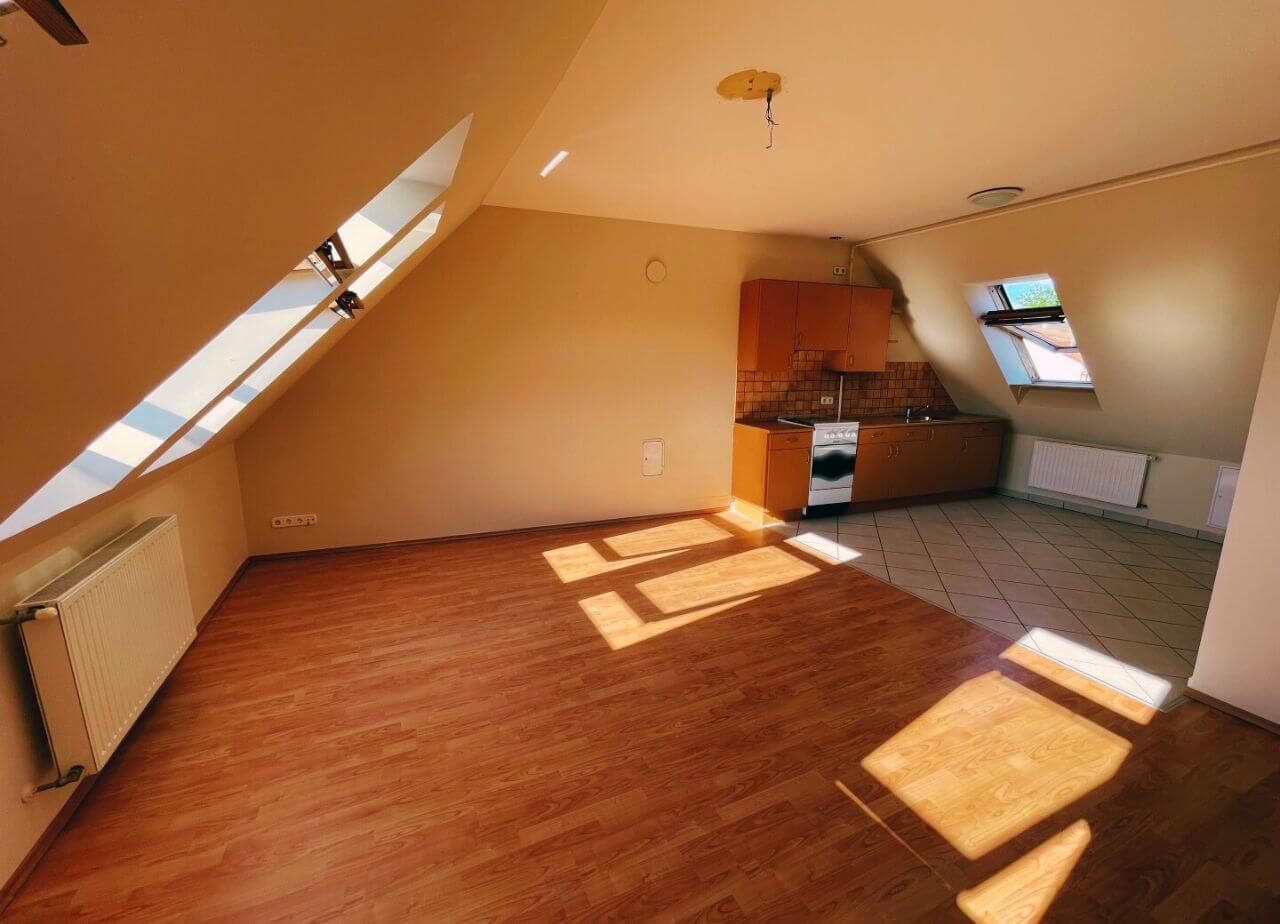 A lakás 1,5 szobával rendelkezik. Egy légtérben található nappali-konyha.